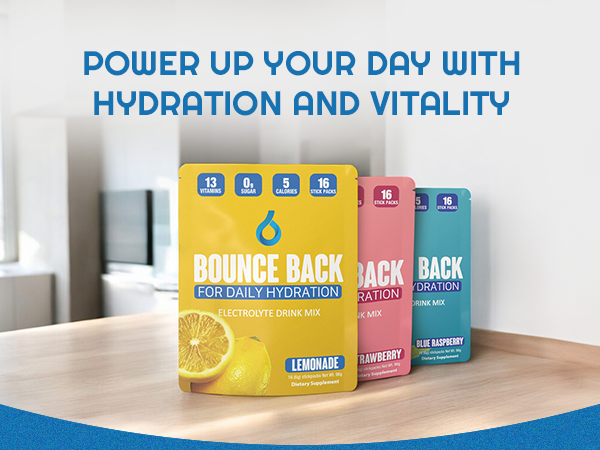 Packed with 13 essential vitamins and 900mg of electrolytes per serving, Bounce Back Daily Hydration keeps you refreshed and hydrated all day long.